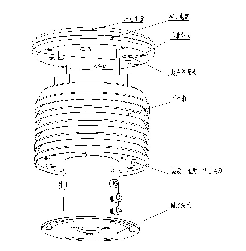 3、風(fēng)速、風(fēng)向、溫度、濕度、大氣壓力、壓電雨量六要素一體式